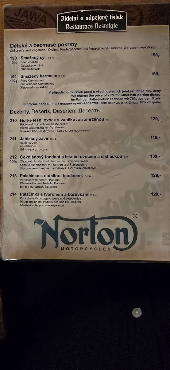 Restaurace Nostalgie offers a menu that blends traditional Czech dishes with familiar European favorites, presenting a straightforward yet satisfying dining experience. The selection is neither elaborate nor overly casual, making it ideal for guests looking to enjoy comforting meals in a relaxed setting.